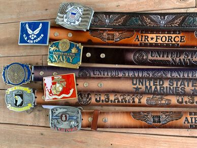 We offer custom fitting on our our leather belts. Name stamping is also available upon request. Our belts come with buckles that are interchangeable. We also have a large selection of belt buckles available for purchase.